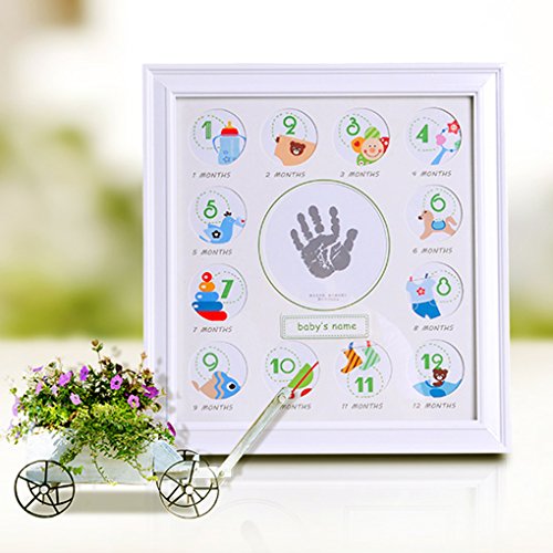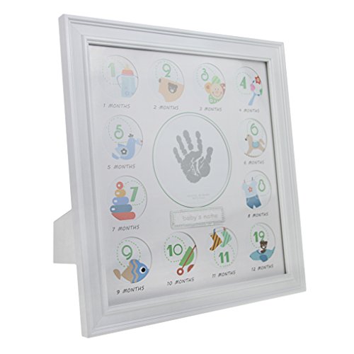 ベビーフレーム フォトフレーム 写真 手形 足形 手作り 赤ちゃん 誕生日プレゼント 無毒 安心 安全 ウッド 防湿性 ガラス 0ヶ月~12ヶ月 12ヶ月 記念品 置き掛け兼用 12枚