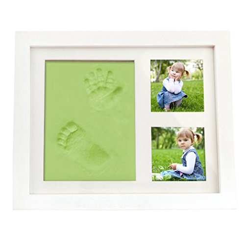 ベビーフレーム 手形足形フレーム フォトフレーム 高級木製 防湿性 写真 2枚 可愛い ユニック 手作り 両手両足 置き 赤ちゃん 出産祝い用品 ベビー記念品 誕生日プレゼント 多彩 無毒 安心 安全 保存可能 グリーン