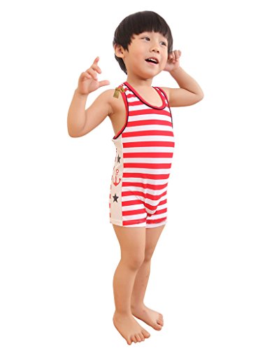 子供水着 男の子 ストライプ水着 子供水着 ボーダーUVラッシュガードパンツセット レッド 120cm