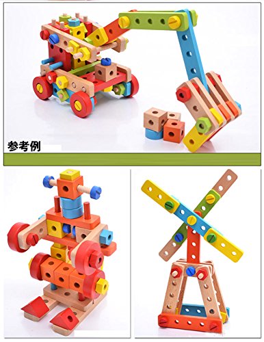 RUMIBOX 138ピース 自由につくろう! 組み立て自由! 木製 知育玩具 はめる! 回す! 積み木 木製 おもちゃ 知育 3080008 [並行輸入品]