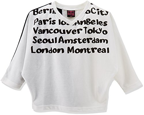 RUSK GIRL(ラスクガール) 天竺VネックロゴPtドルマン長袖Tシャツ 100cm /O/WHITE NO.P-3511-51