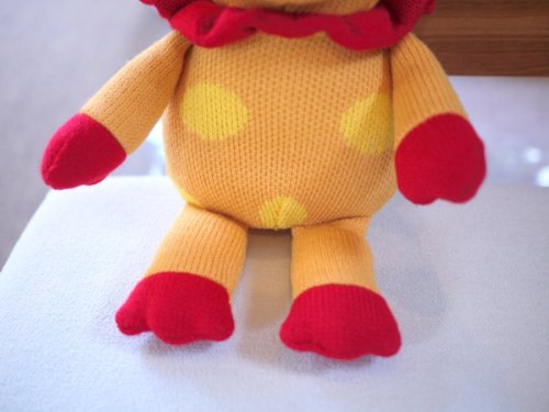 おなかがドット柄になっているニット素材のポップなぬいぐるみ!