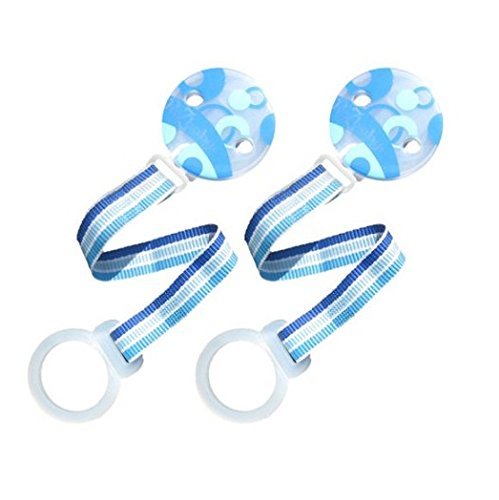 You will Receive (2) RazBaby Keep-It-Kleen Pacifier Holders- Blue Assorted, Blue - comes in assorted styles: Ethan Penguin, Ely Elephant, Finley Clownfish or Razbaby Blue - NO STYLE CHOICE AVAILABLE, Use with Keep-It-Kleen and knob style pacifiers, Safety clip attaches to baby's clothing, Keeps baby's pacifier within reach