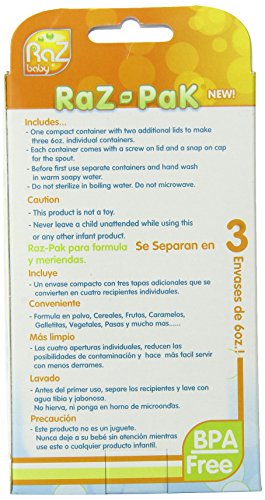 ●【商品説明】●「RaZ-Pak ラズパック(お菓子入れ)」は、積み重ねができるスナックパックです。●粉ミルクはもちろん、ボーロやクラッカーを分けて入れたり個別に持ち歩きもできます。●お出かけ時に役立ちます。●パパママのプロテイン入れとしてもオススメ。●【素材】●ポリカーボネイト、シリコン●対象年齢:6ヶ月●男女共用●重量(kg):0●まとめ買いの場合、システムの仕様で個数分の送料が加算される場合がありますが、送料は1配送先につき1個分の金額となります。●システムの仕様で配達日を指定出来る場合がありますが、配達日の指定は出来ませんのでご了承ください。尚、時間指定は出来ます。●ご注文確定後のキャンセルならびに、お届けしました商品のお客様都合による「返品 交換」は行っておりません。