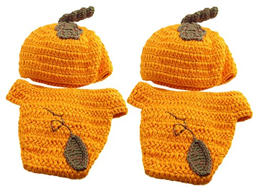 - ハロウィンに最適な赤ちゃん、幼児用パンプキンニット帽とおむつガードのセットです。