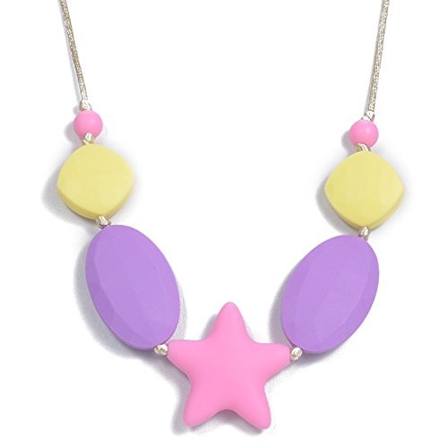 Silicone Baby Teething Necklace, Baby Safe for Mom to Wear, Fun Baby Shower Gift Grandma Gift, Ease Teething Pain, BPA Free Chewable Beads, Safety Knotted Silk Rope, Star Teether Toy, Pink [並行輸入品]
