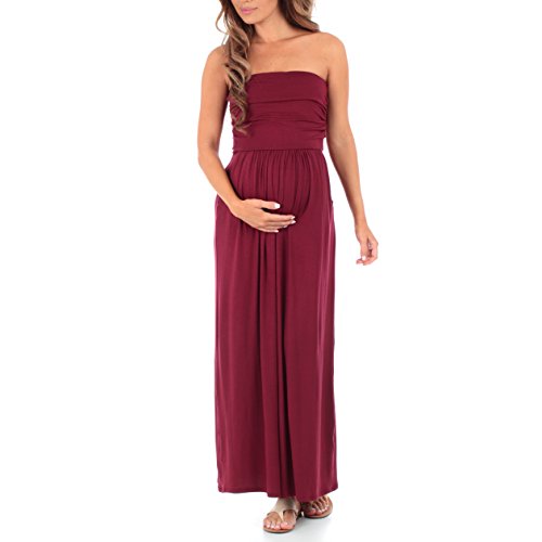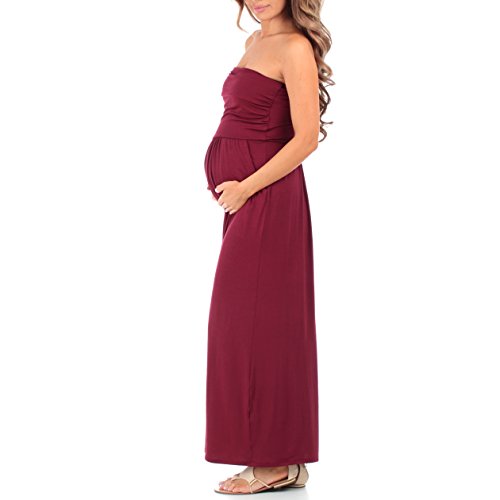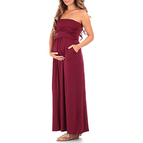 Rags and Coutureレディースストラップレスマキシチューブマタニティドレスwithポケット カラー: レッド