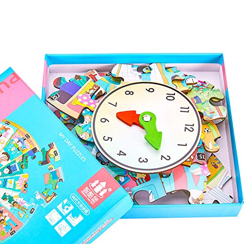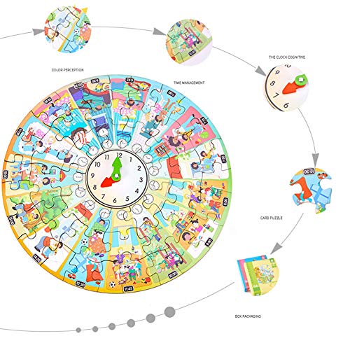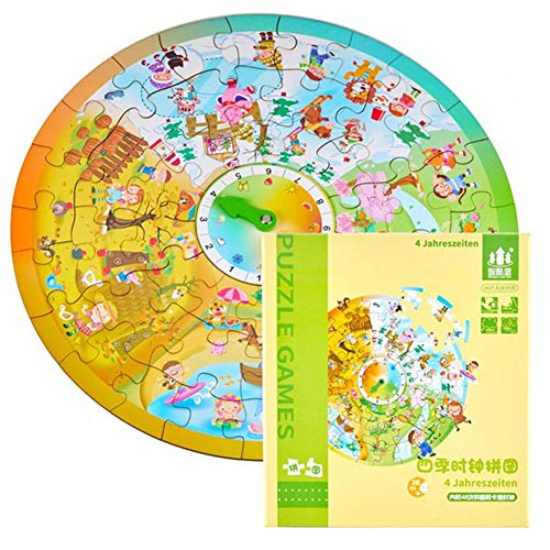 RaiFu ジグソーパズル 時計 パズル 子供 時計 木製 パズル おもちゃ タイム シーズン 認知 子供 向け ゲーム 早期 教育 教育 ウッド おもちゃ 四季の時計