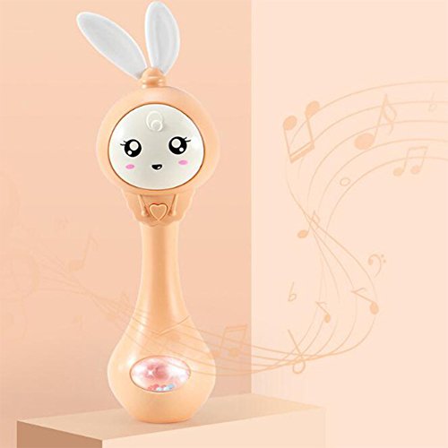 RaiFu ベビーおもちゃ おしゃぶり ハンドベル 赤ちゃん かわいい ラットル 音 光 ミュージ カル ハンドベル 新生児 砂のハンマー おしゃぶり 教育おもちゃ ウサギライトオレンジ