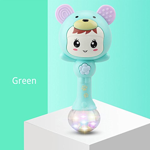 RaiFu ベビーおもちゃ おしゃぶり ハンドベル 赤ちゃん かわいい ラットル 音 光 ミュージ カル ハンドベル 新生児 砂のハンマー おしゃぶり 教育おもちゃ スマイリーグリーン