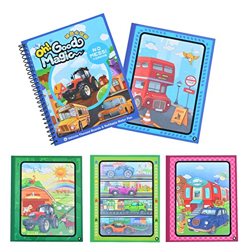 RaiFu 絵本 塗り絵 魔法 水のぬりえの本 ブラシ カラー ランダム 交通車両1505