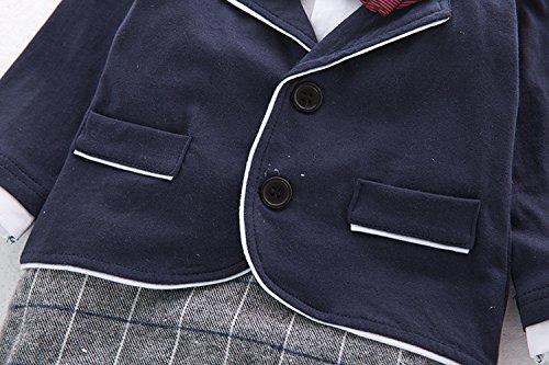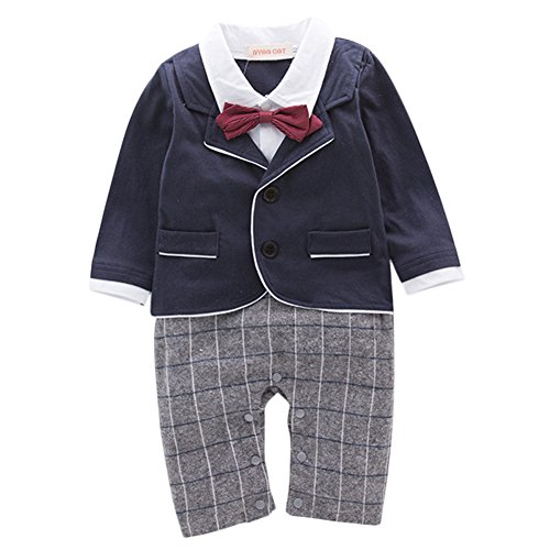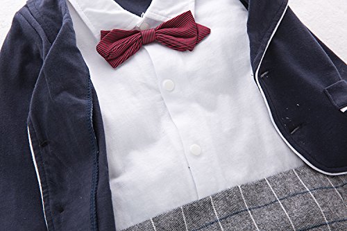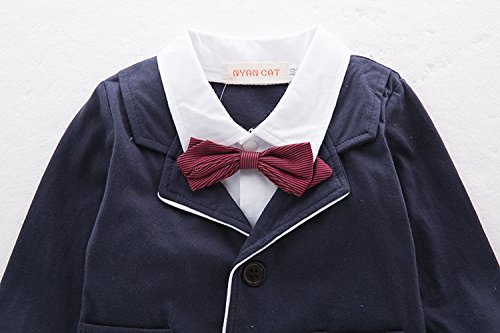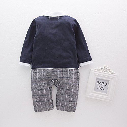 RaiFu ロンパース 秋 ベビー ボーイ ロングスリーブ オーバーオール ボウタイ チョッキ コート ジェントルマン キッズ ジャンプスーツ ネイビーブルー 70cm