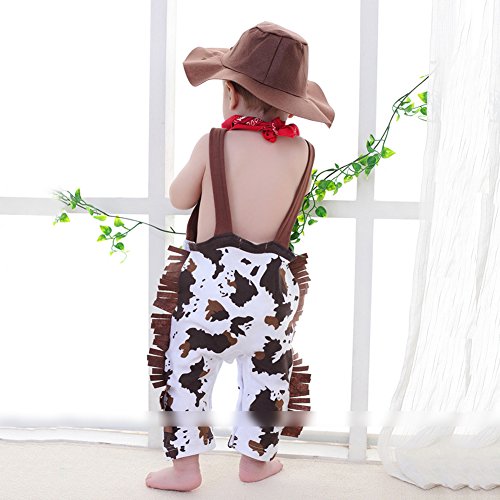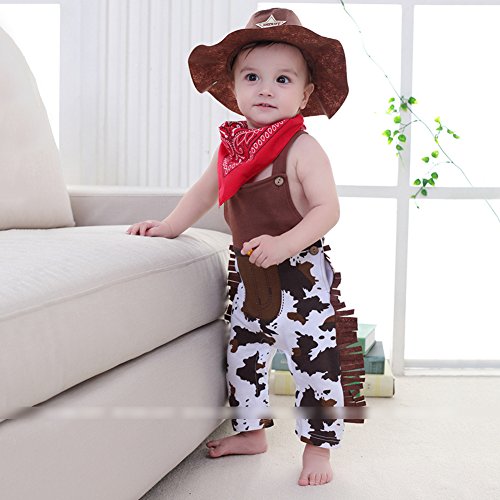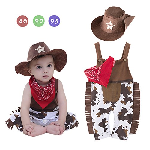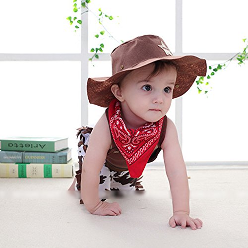 RaiFu ロンパース ベビー ボーイ タッセル トリム ストラップ ジャンプスーツ ウエスト カウボーイ ハット トライアングル スカーフ 80ヤード(3-6ヶ月)