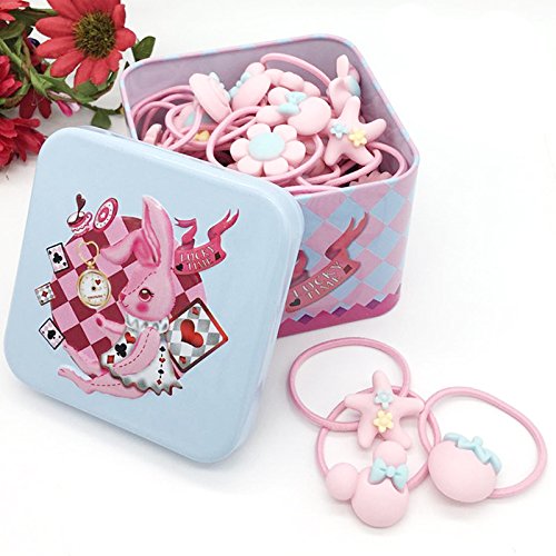 RaiFu ヘアゴム 髪飾り キッズ ヘアアクセサリー スタイリッシュ ナイロン 弾性 ヘッドバンド ヘアーバンド 女の子 子供 幼児 おしゃれ かわいい 40個セット 漫画のピンクのウサギ