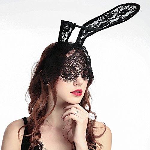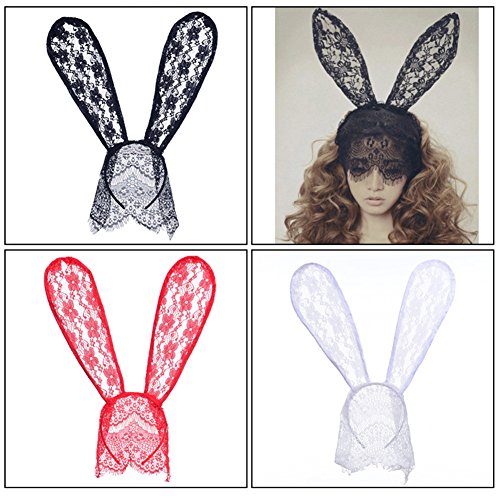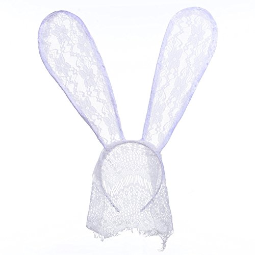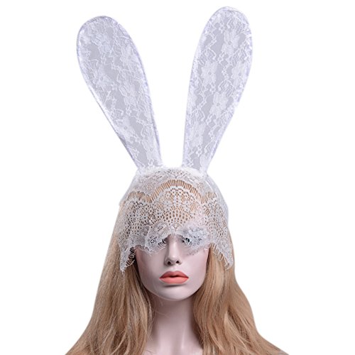 RaiFu 頭飾り 頭のマスク ウサギの耳 レース 女性 繊細 セクシー ホワイト