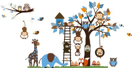 大人気!Rainbow FoxのJungle Zoo Meeting on a Tree Owl, Monkey Wall Decal for Kids, Nursery Roomです!早目にお買い求め下さい!