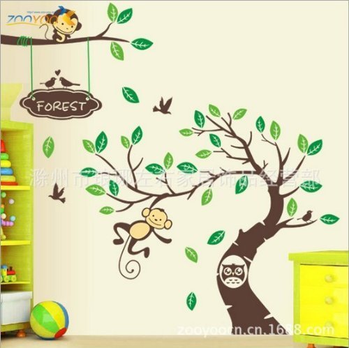 Huge Jungle Forest Monkey Climbing on Tree Monkey Wall Decal Nursery Wall Decal [並行輸入品]