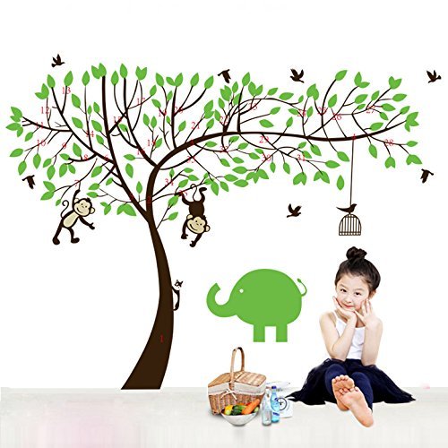 Cartoon Cute Monkeysビッグツリー取り外し可能壁ステッカーホームデコールデカル 子供部屋 ナーサリー向き 2枚セット(グリーンツリー)