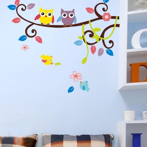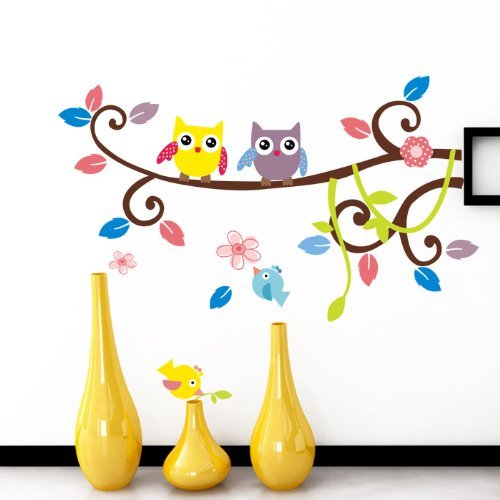 Couple Owl Singing on Branches with birds owl wall decal nursery wall decal [並行輸入品]