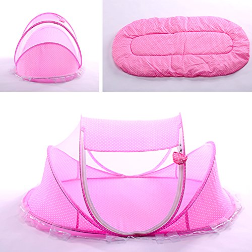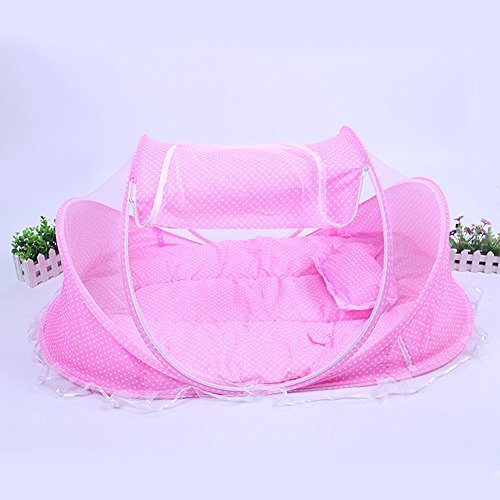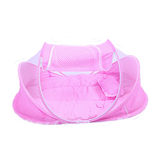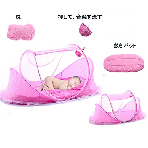 エルフ ベビー(Fairy Baby)音楽 折りたたみベビー蚊帳 枕と布団セット (110*65*60cm,ピンク)