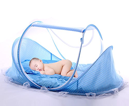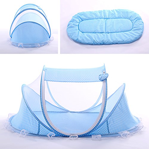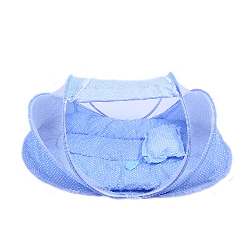 エルフ ベビー(Fairy Baby)音楽 折りたたみベビー蚊帳 枕と布団セット (110*65*60cm,ブルー)