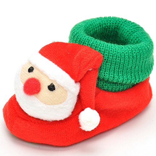 エルフ ベビー (Fairy Baby) クリスマス 新生児靴 室内滑り止め シューズ 0-12か月 暖かい レッド 11.5cm(一足)