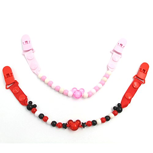エルフ ベビー (Fairy Baby) 可愛い おしゃぶりホルダー 100 %無毒シリカゲル珠 多機能 2枚組 ピンクとレッド