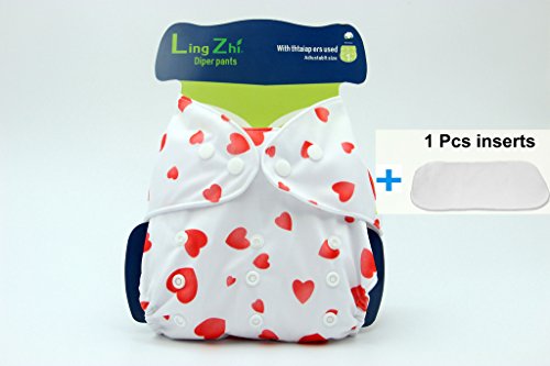 LINGZHI サイズ可調整 柔らかい綿おむつカバー 通気性 快適 1枚入 (カラー:ピンク愛)