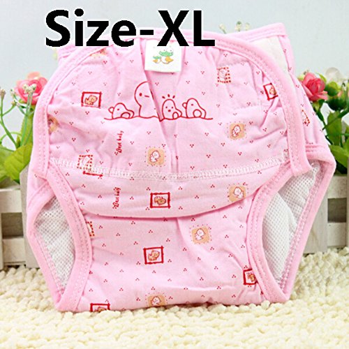 エルフ ベビー(Fairy Baby) ベビー用綿100%漏れ防止赤ちゃんメッシュポケット式布おむつカバー(ピンク、XL)