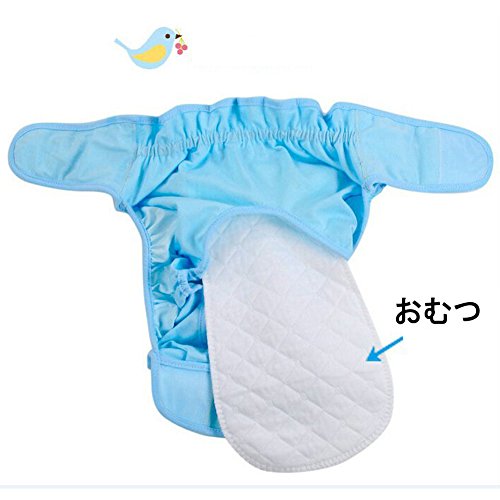 便利なポケット式で、布おむつをポケットの中に入れて使うこともできます。モレを防止するために、きちんと布おむつを当てて、こまめにおむつ替えをして下さい。