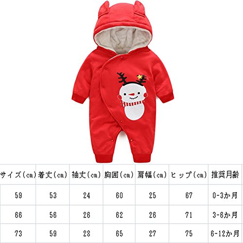 エルフ ベビー(Fairy Baby)ベビーカバーオールロンパース 長袖 雪だるま着ぐるみ フード付き 秋冬防寒 73cm レッド
