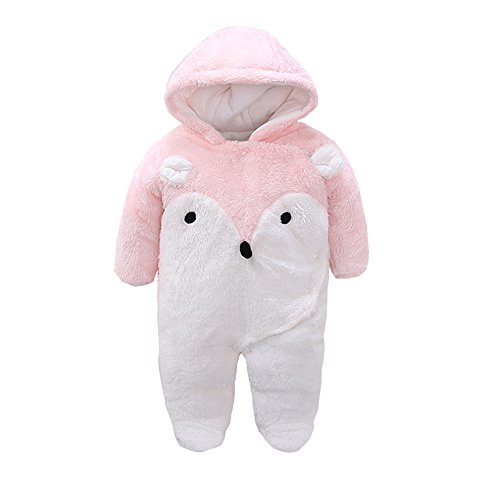 エルフ ベビー(Fairy Baby)ベビーロンパース 着ぐるみ 防寒着 前開きフード付き 可愛いきつねさん 73cm ピンク