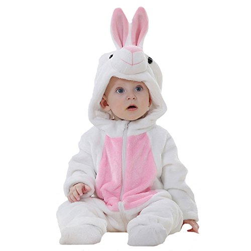 エルフ ベビー(Fairy Baby)うさぎ着ぐるみ ベビー服秋冬 フード付きロンパース ジャンプスーツ(size:100,ホワイト)