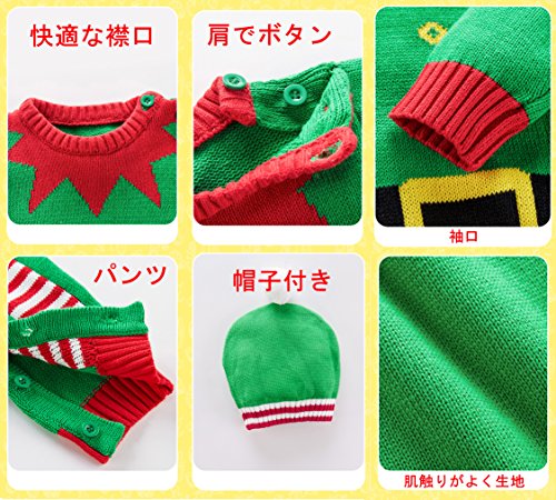 エルフ ベビー(Fairy Baby)クリスマスベビーロンパース 帽子付き ドール コスチューム 仮装 着ぐるみ 90cm