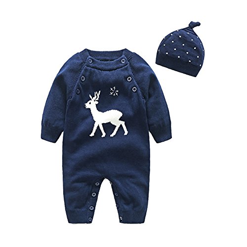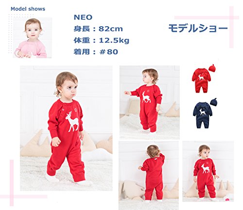 クリスマス衣装 エルフ ベビー(Fairy Baby)トナカイ柄ロンパース ベビー服秋冬 帽子付き 紺色66cm
