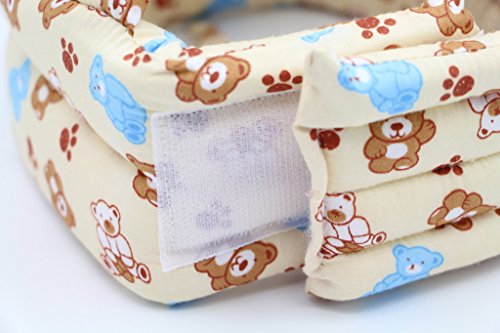- 弾力性のあるスポンジが赤ちゃんの頭を転倒時や家具等にぶつけた時の衝撃から守り、ケガを防止します。