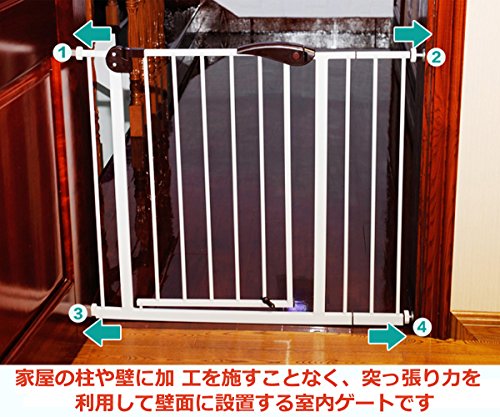 - 突っ張り力を利用して、家屋の柱や壁に加 工を施すことなく、取り付け簡単な室内用ゲートです。