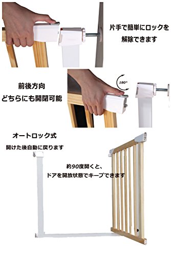 - 突っ張り力を利用して、家屋の柱や壁に加 工を施すことなく、取り付け簡単な木製のゲートです。(6-24か月赤ちゃん適用)