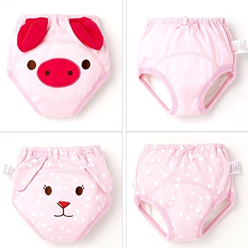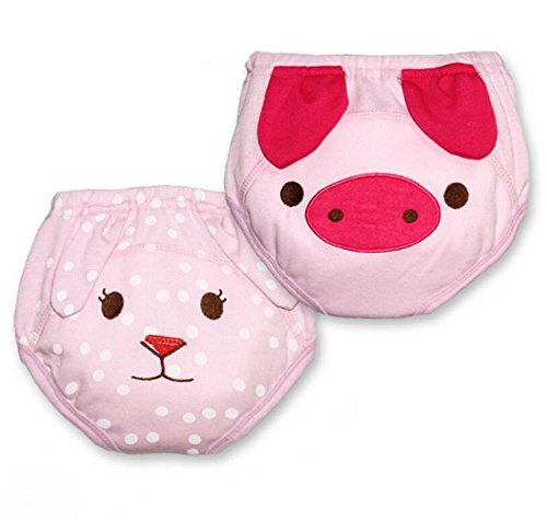 エルフ ベビー(Fairy Baby)ベビー用布おむつ 4重防水 可愛い 再利用可能 通気 トレーニングパンツ 2枚組(ピンクセット,80)
