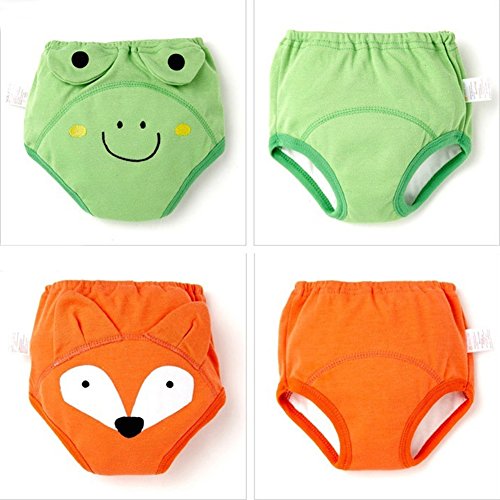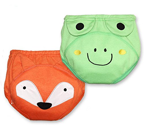 エルフ ベビー(Fairy Baby)ベビー用布おむつ 4重防水 可愛い 再利用可能 通気 トレーニングパンツ 2枚組(きつね+蛙,90)