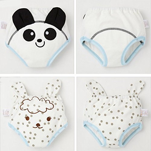 エルフ ベビー(Fairy Baby)ベビー用布おむつ 4重防水 可愛い 再利用可能 通気 トレーニングパンツ 2枚組(パンダ+うさぎ,100)