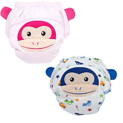 エルフ ベビー(Fairy Baby) ベビー用トレーニングパンツ 4層 防水 可愛い 再利用可能 2枚組(猿,サイズ:M)