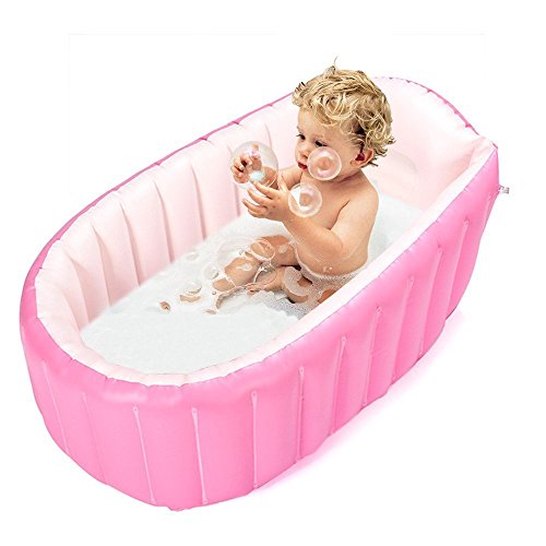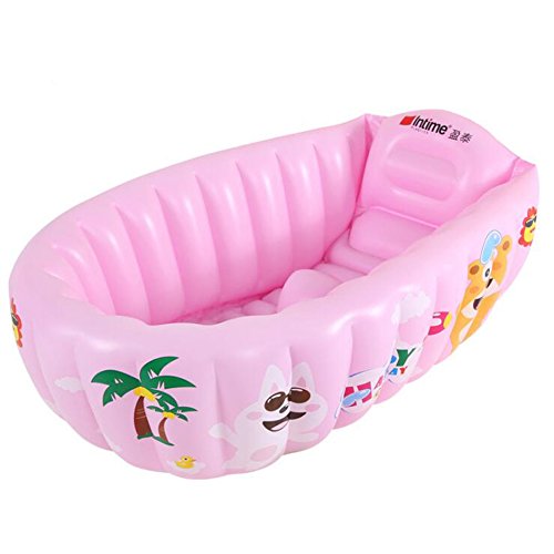 エルフ ベビー(Fairy Baby)ふかふかベビーバス ビニール 折り畳み プール(98*65*28、ピンク、動物柄)