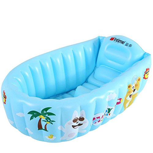 エルフ ベビー(Fairy Baby)ふかふかベビーバス ビニール 折り畳み プール(98*65*28、ブルー、動物柄)