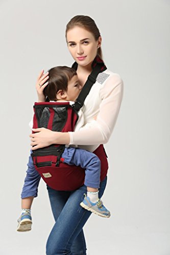 LINGZHI ベビーキャリア 多機能抱っこひも 通気性コットン 片肩と両肩抱っこ紐付き ワイン