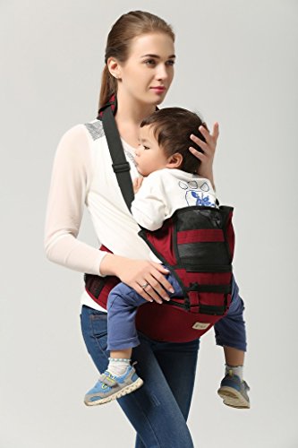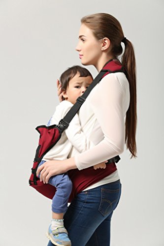 LINGZHI ベビーキャリア 片肩多機能抱っこひも 通気性コットン100% ワイン