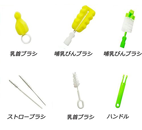 - セット内容:2哺乳びんブラシ(1スポンジ+1ナイロン)+2乳首ブラシ(1ナイロン+1スポンジ)+2ストローブラシ