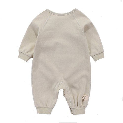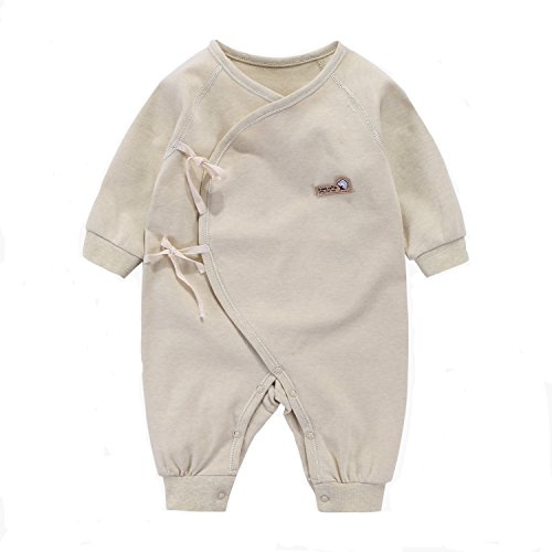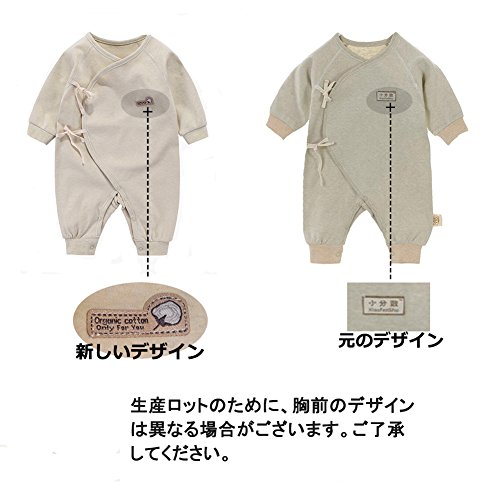 エルフ ベビー(Fairy Baby)オーガニックコットンベビー肌着 新生児ロンパース パジャマ 長袖 出産祝い 73cm カーキ リブカフス