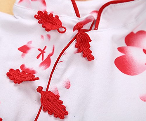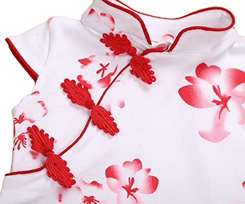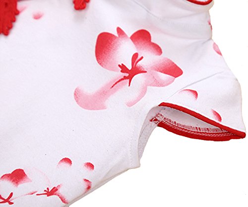 エルフ ベビー(Fairy Baby)ベビー肌着 夏用ボディスーツ チャイナ風 チーパオ 女の子 花柄 80cm レッド