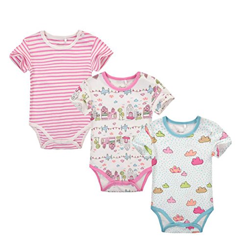 エルフ ベビー(Fairy Baby)ベビー肌着 ボディスーツ 半袖 3枚セット 可愛い 女の子 9M 城柄